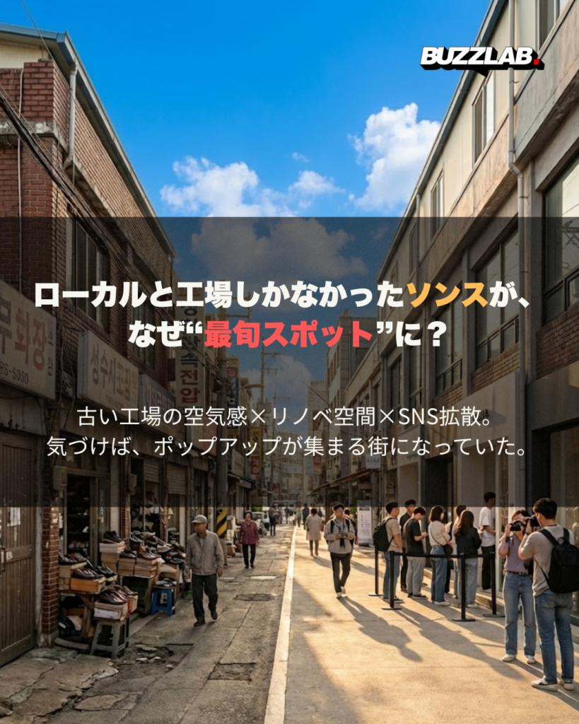 なんでソンスだけ、いつも行列なの? “ポップアップが当たる街”ソンスの法則を8枚で解説 週末のソンス(聖水)は、だいたい行列。しかも、ただの行列じゃなくて「目的を持って並んでる人の行列」。 新作を体験したい 限定グッズがほしい “写真を撮るために...