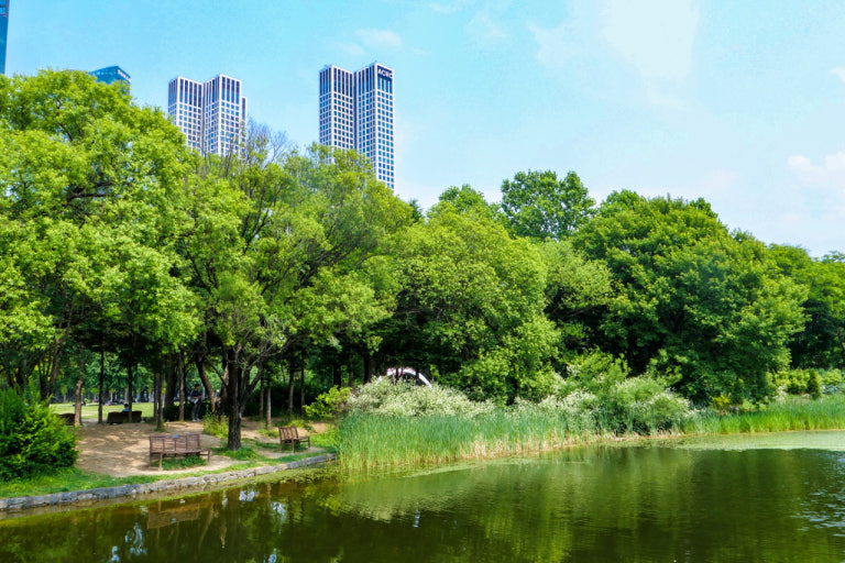 ポップアップ巡りで疲れたら、ソンスに隣接した「ソウルの森(서울숲)」でひと息。緑豊かな公園を散歩しながらリフレッシュできます。さらに、ソウルの森内には話題の新業態「emart24 Dessert Lab」がオープン。テラス席でデザートを楽しみながら、夕方の公園の雰囲気を味わえます。